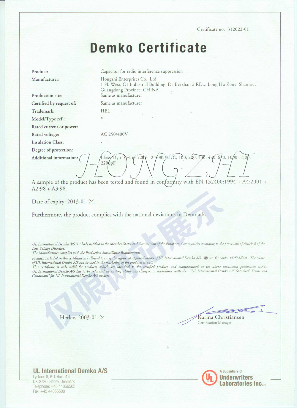 COMPANY CERTIFICATION