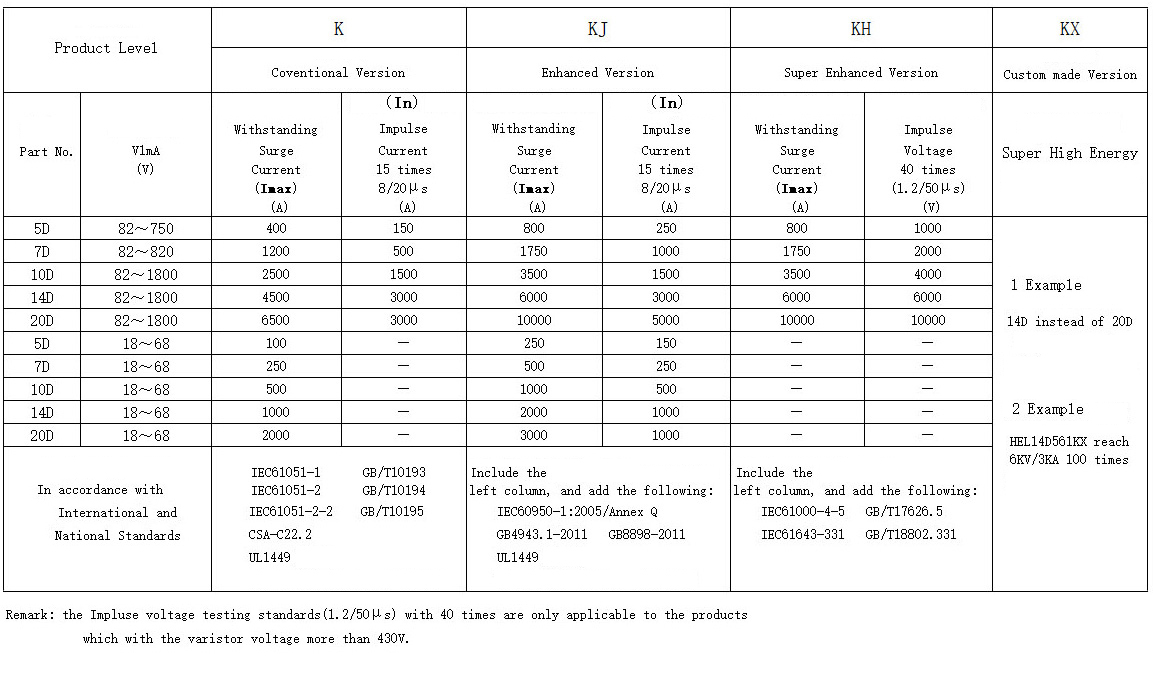 Classification accordin∑•£<g to 8/20μs Surge current