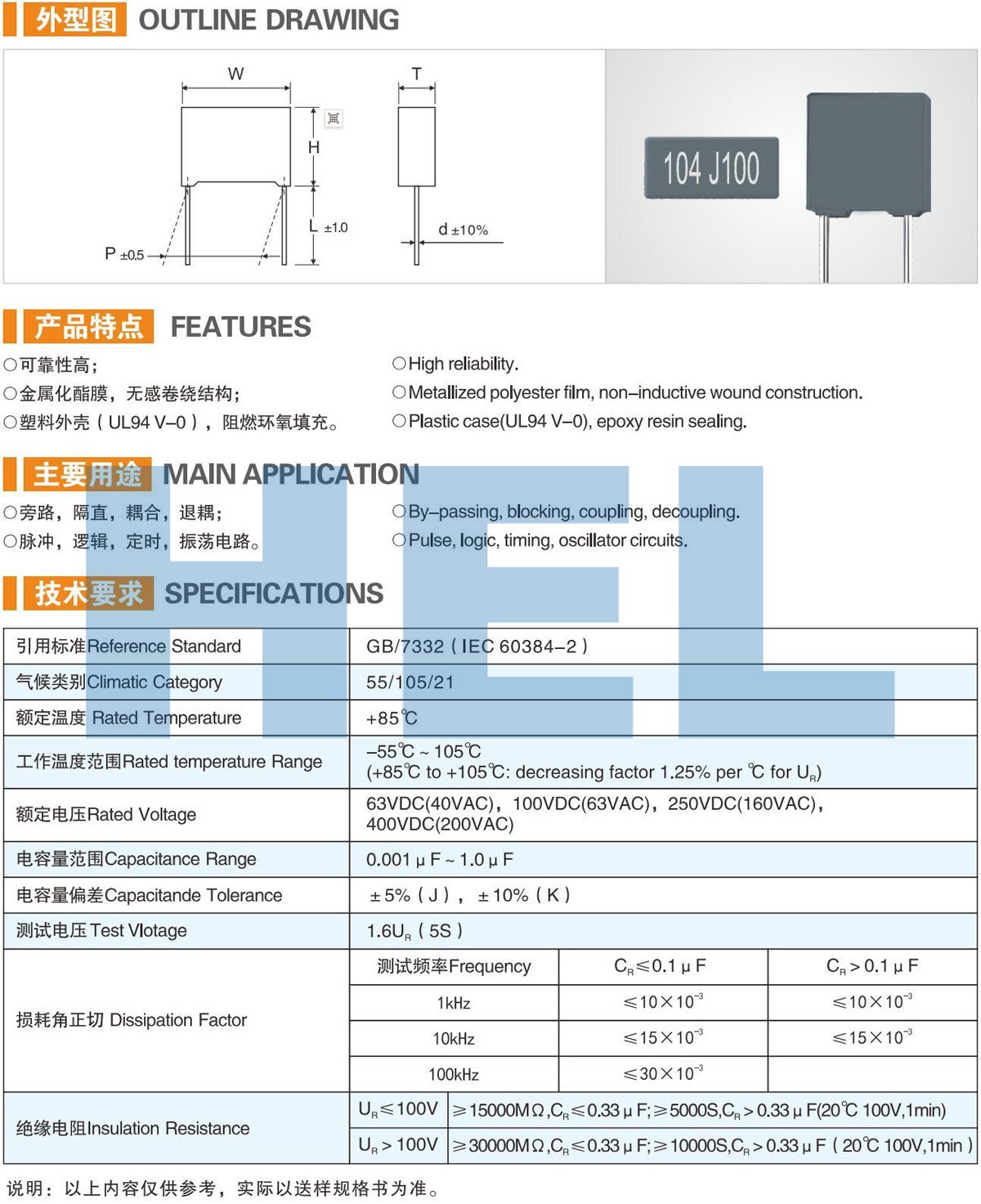 MEM塑料外(wài)盒金(jīn)屬化(huà)聚酯薄膜電(diàn)容器(qì) CL21X-B