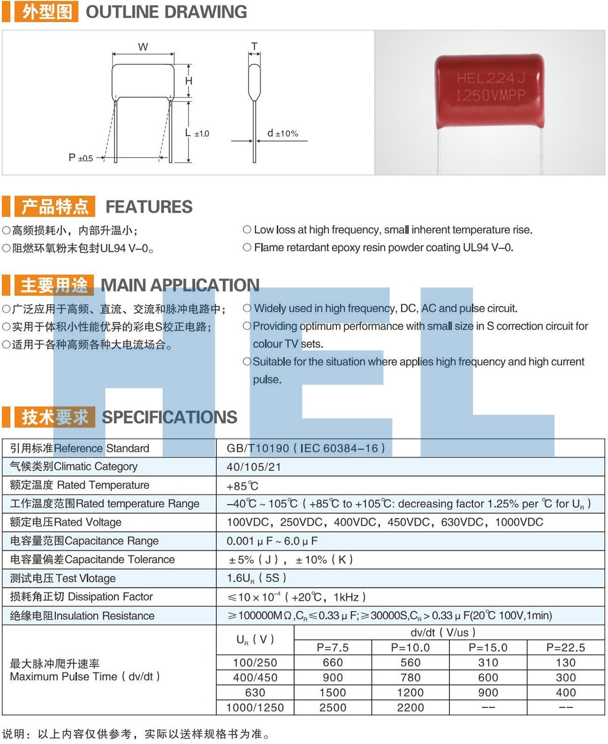 MPP金(jīn)屬化(huà)聚丙烯薄膜電(dià∞n)容器(qì) CBB21