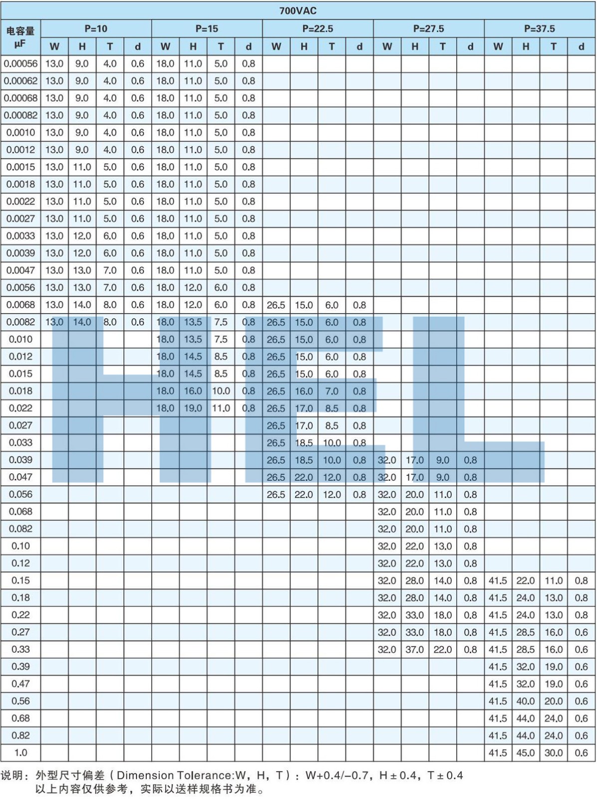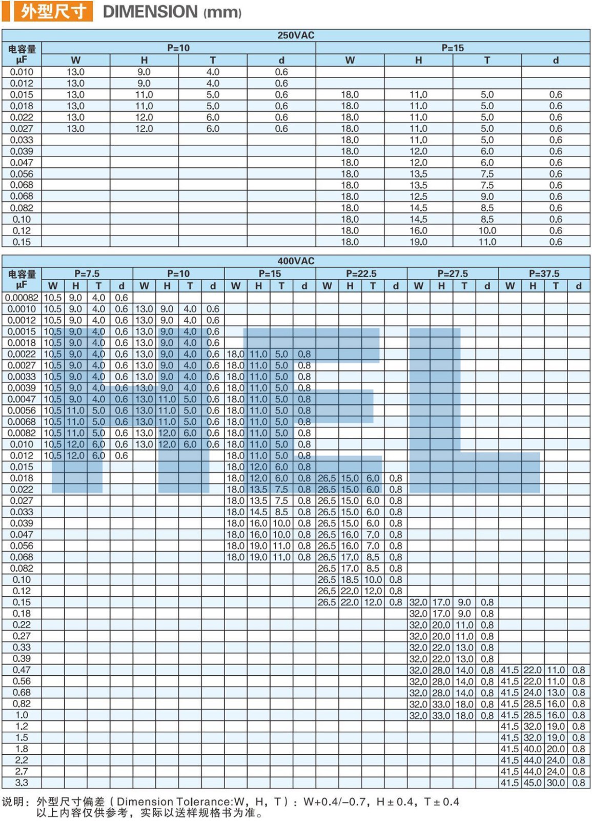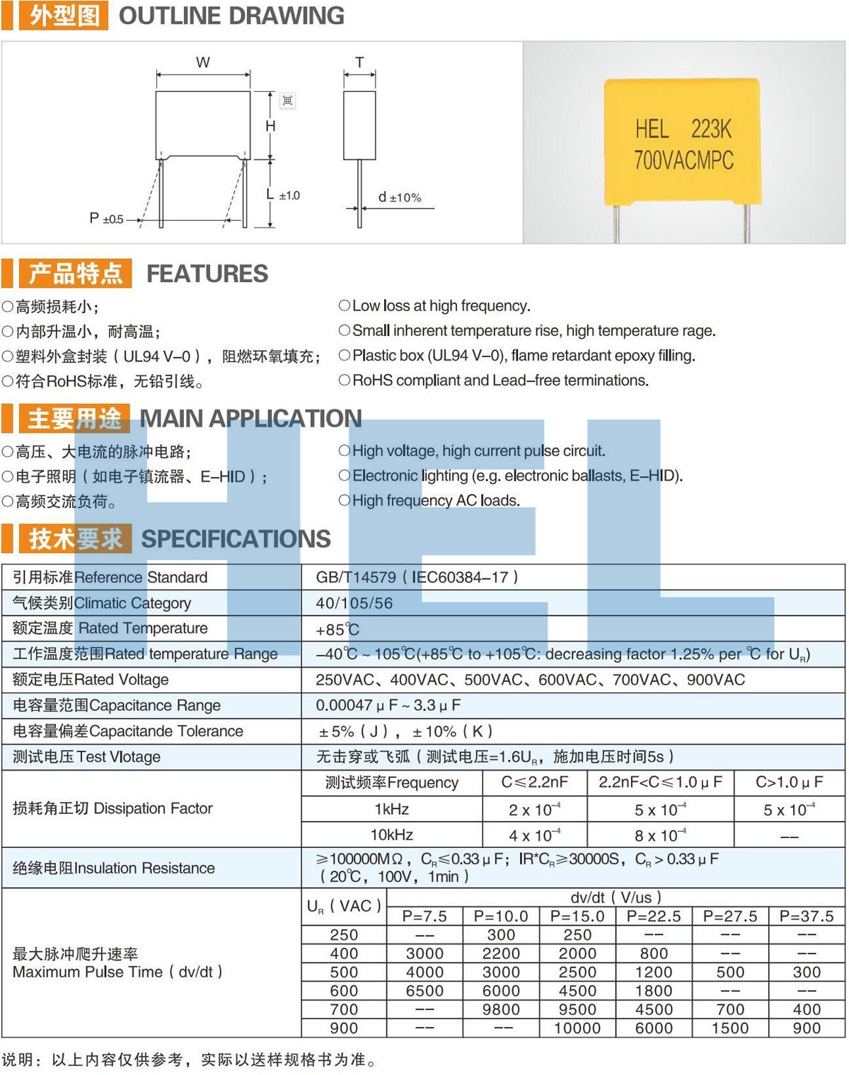 MPC 105℃塑料外(wài)盒金(jīn)屬化(huà)聚丙烯薄膜電(di←≤'£àn)容器(qì)(MKP23)