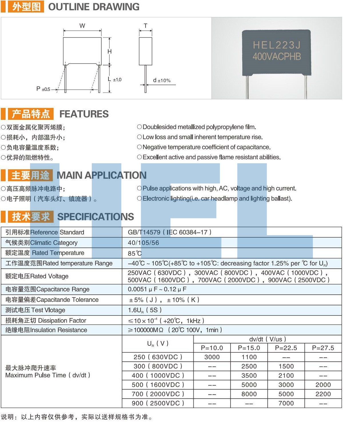 PHB塑料外(wài)盒雙面金(jīn)屬化(huà →ε©)聚丙烯薄膜電(diàn)容器(qì) MMKP84